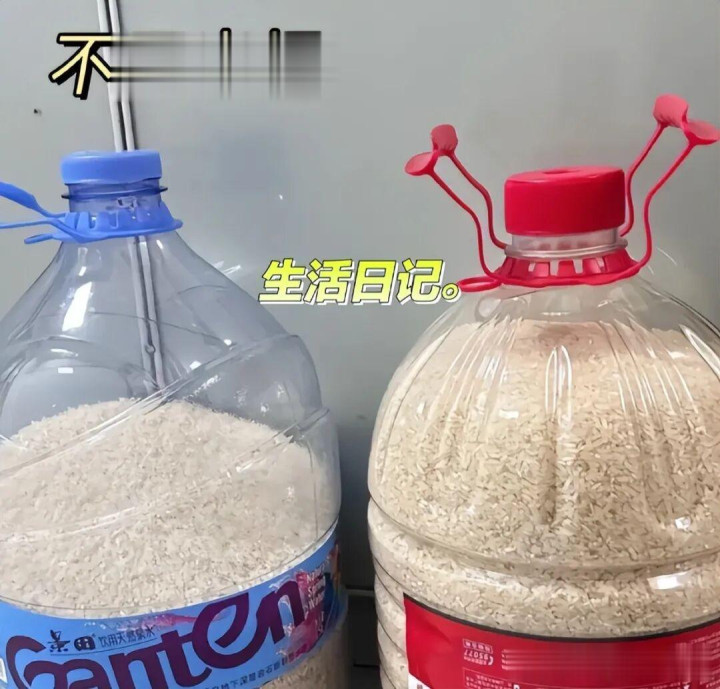 我婆婆说,许多塑料瓶材质很富厚,用来装家里的谷物刚刚好。