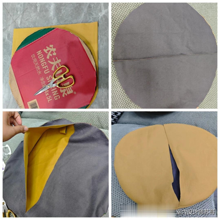 两个圆形纸壳,一个剪裁出来奶粉罐的形式,一个外面用热熔胶粘上布料,一定要彻底包裹上。