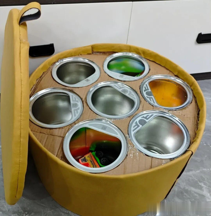 家里淌若有闲置的奶粉罐,可以试试diy一个小凳子。
