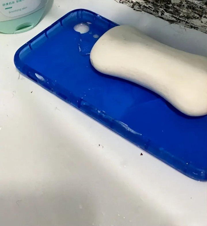 在手机壳上头绑两三根皮筋,往洗手台一放,再把肥皂放上去,既可以沥水,还防滑,根蒂无须买肥皂盒。