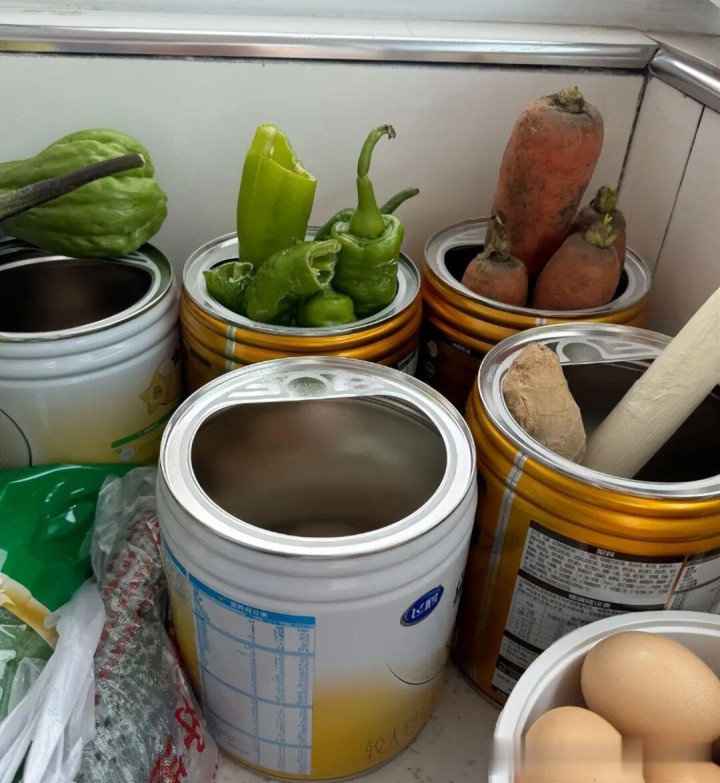 前几天去婆婆家,我发现这些放在我家占场所的奶粉罐,放在我婆婆家彻底酿成了收纳神器。