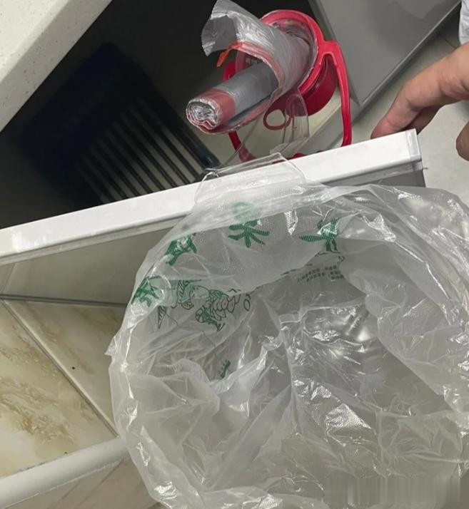 我婆婆说,一个壁挂垃圾桶几十块钱,我用塑料瓶剪一下,挂在柜门上,这不相似吗!
